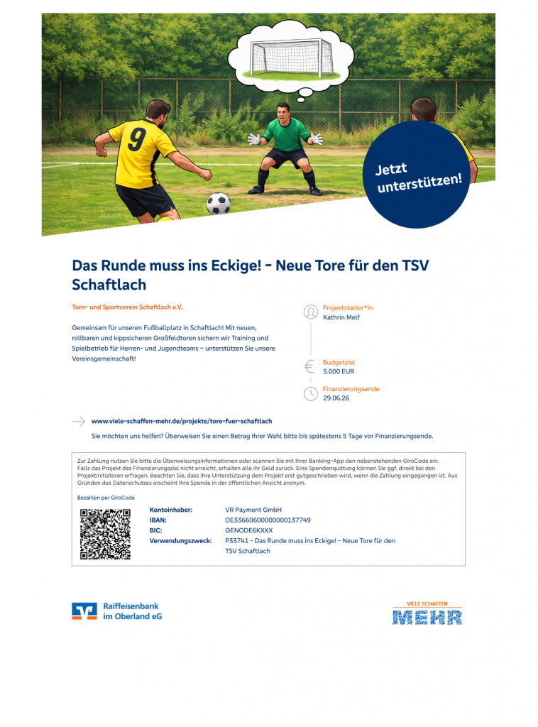 –> Hier geht’s zum Link: Das Runde muss ins Eckige! – Neue Tore für den TSV Schaftlach – Viele schaffen mehr